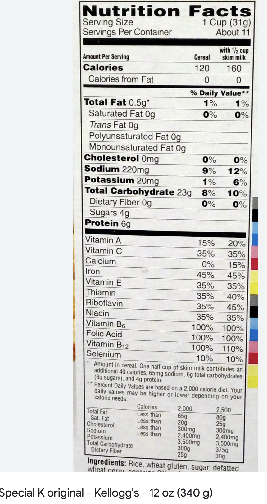 Don't be fooled by the 10 gm vs 4 gm of sugars. The bottom line is the Special K has MORE grams of carbohydrates than the Lucky Charms does!